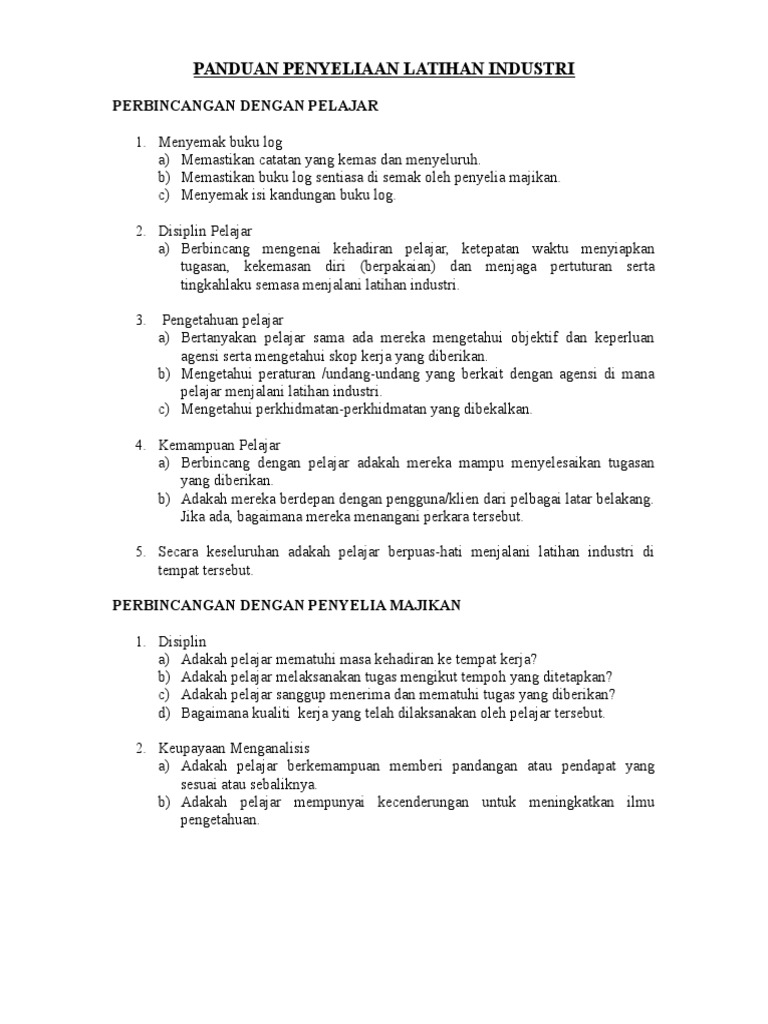 Skop tugas hendaklah memberi peluang kepada pelajar untuk mengaplikasikan pengetahuan dan kemahiran yang dipelajari serta mendapat pendedahan amalan kerja dalam. LATIHAN INDUSTRI 10 Pengenalan. Pendedahan pelbagai jenis pekerjaan dalam industriorganisasi.